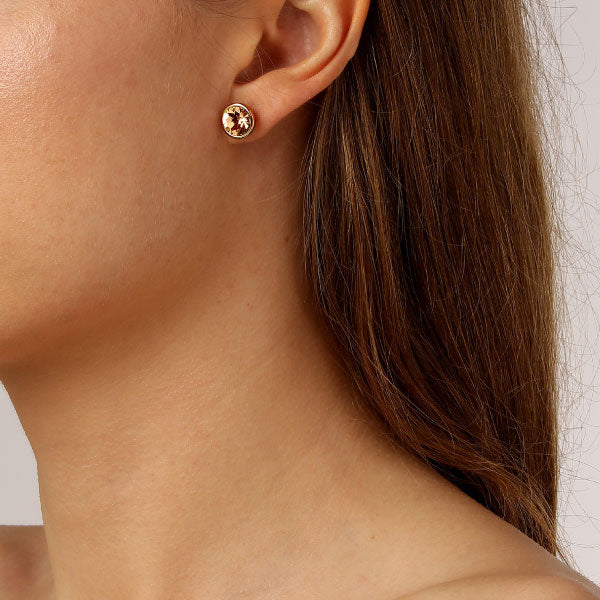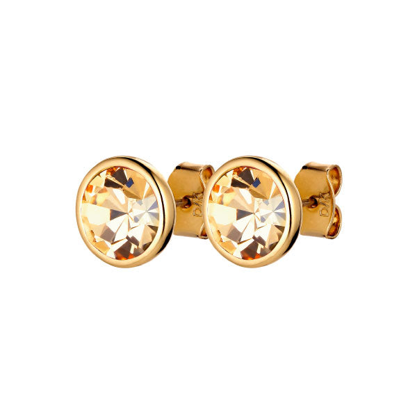 DIA - a mid-sized stud earpost made in polished brass with gold finish box setting. Surgical steel post. A large facetted solitaire crystal adorns the front - here shown in golden.