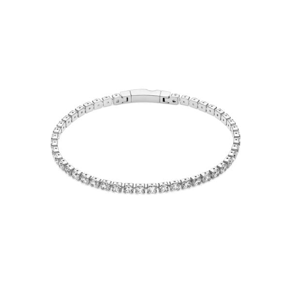 Bracelet made of 925 Sterling Silver with rhodium, polished surface and handset with facet cut white zirconia.