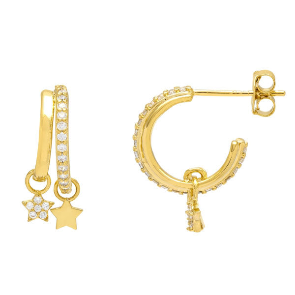 • Estella Bartlett Gold Duo Pave Star Hoops with White CZ