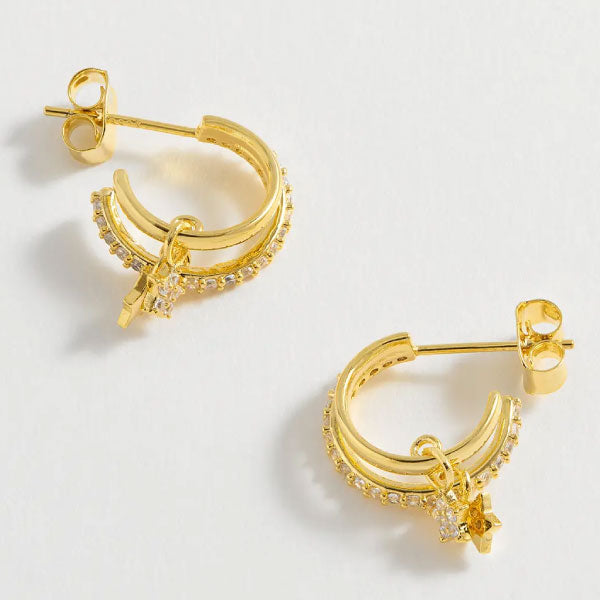 Estella Bartlett Gold Duo Pave Star Hoops with White CZ