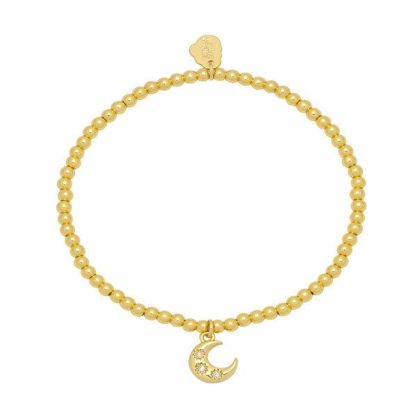 Go for a celestial look with this CZ Moon Bracelet. Featuring a stretch beaded bracelet and a moon charm adorned with clear cubic-zirconia stones, this piece adds a bit of sparkle to your style.