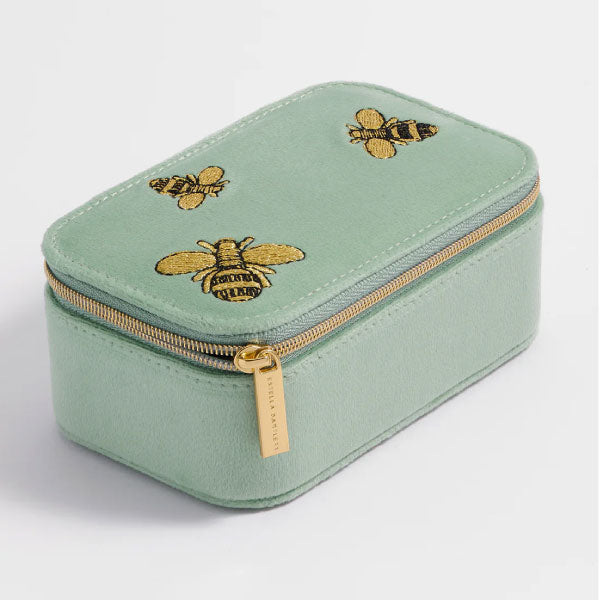 Estella Bartlett Green Velvet Embroidered Bees Mini Jewellery Box