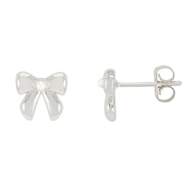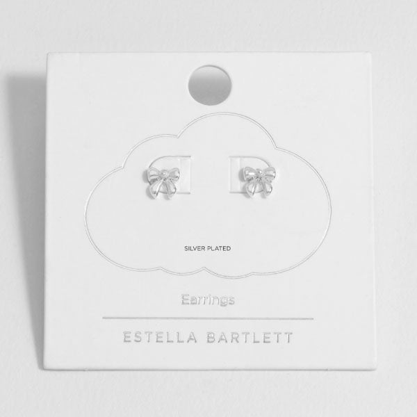 Estella Bartlett Silver Bow Stud Earrings with Pearl