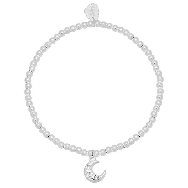 Go for a celestial look with this CZ Moon Bracelet. Featuring a stretch beaded bracelet and a moon charm adorned with clear cubic-zirconia stones, this piece adds a bit of sparkle to your style.