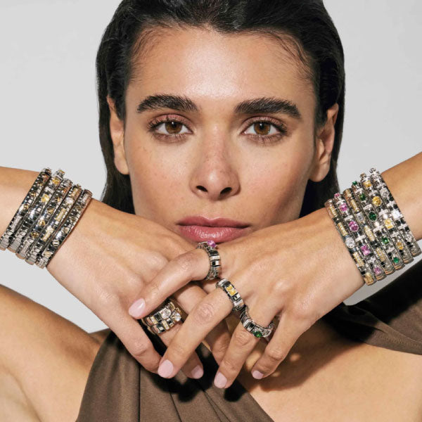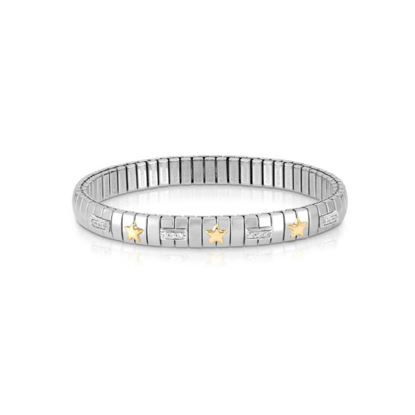 Extension bracelet made in stainless steel with gold and silver details and Cubic Zirconia pavé. Made in Italy. Sophisticated finishing and sparkling details make this bracelet a perfect display of personal style for every occasion. Choose the symbol that you like best for an accessory that is unique and personal, carefully crafted in our jewellery workshops just for a jewellery lover like you! Available with: Four-Leaf Clover, Heart, Star, Point and Hexagonal Screw.