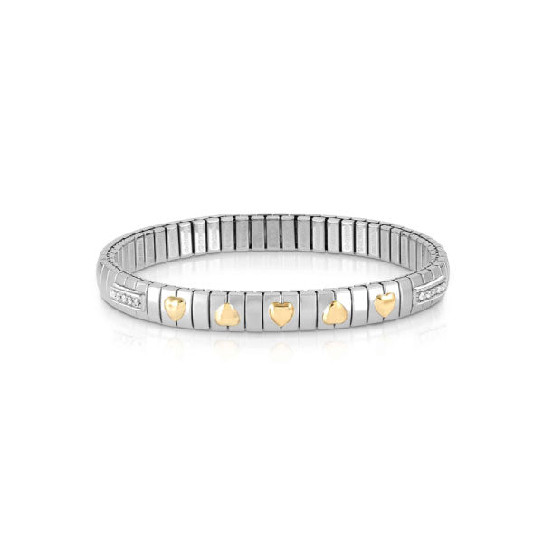 Extension bracelet made in stainless steel with silver, gold and Cubic Zirconia. This accessory made in Italy will light your look up with luxury and you will be refined for every occasion. Choose your favourite symbol and make your look unique and personal, perfect for every occasion. Choose from: Four-Leaf Clover, Heart, Star, Point and Hexagonal Screw.