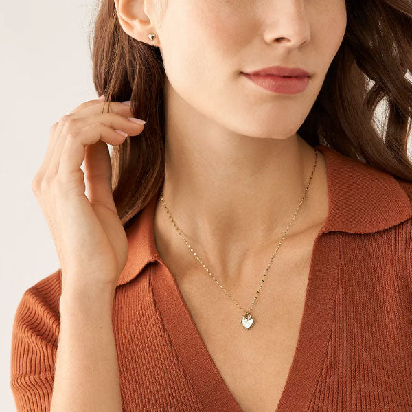 Fossil I Heart You White Mother of Pearl Necklace and Earrings Set