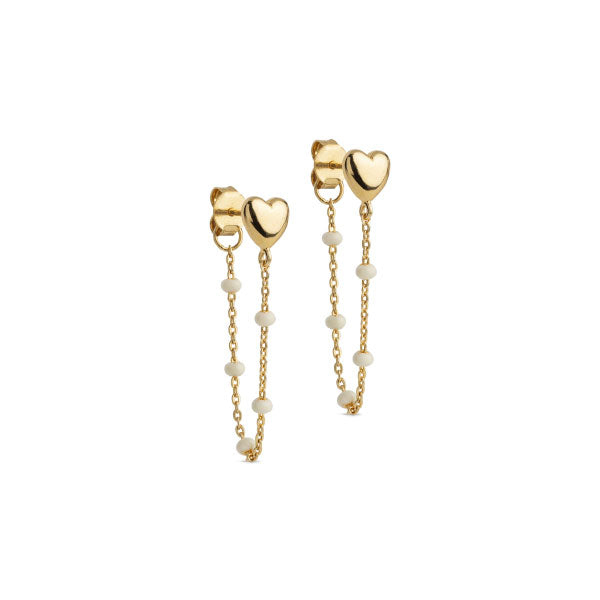 The hand-painted enamel beads dance lightly down the chain and come here in a beautiful beige shade, providing a calm, natural, and sophisticated expression. The heart at the top adds a warm and feminine touch, making this earring truly special. Perfect for those who love classics with a touch of simplicity and elegance. Wear it alone as a quiet statement - or with your other Lola favourites for a balanced and personal look.