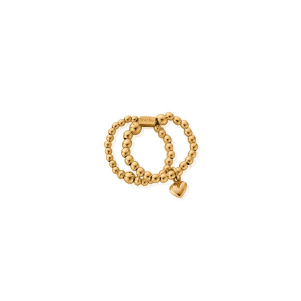 Gold Mini Puffed Heart Double Ring