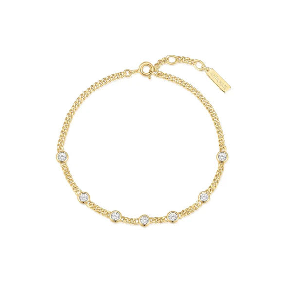 Gold Multi Station Round Stone Chain Bracelet