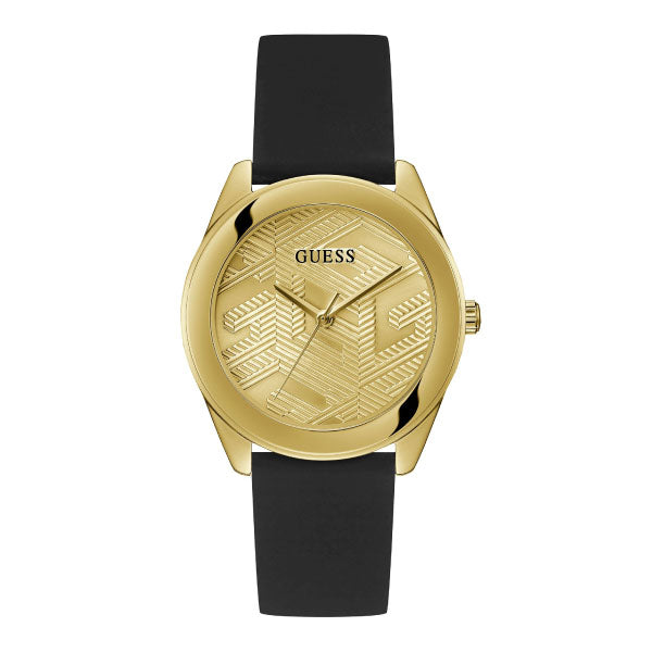 An understated case design on this watch gives way to a beautiful G cube logo pattern on its tonal dial.