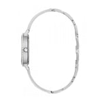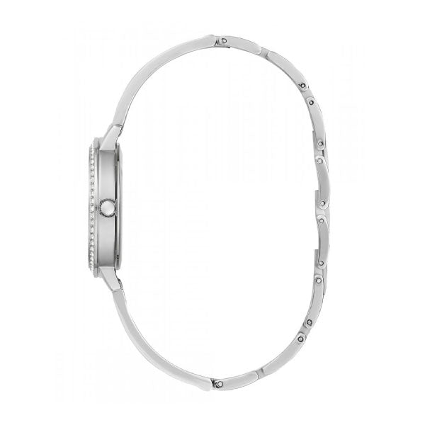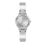 Guess presents another stunning analogue ladies watch. It comes with a silver stainless steel bangle with a stainless steel case complemented by a silver dial.