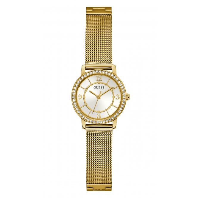Dress this pretty and petite style up or down. Its glitz details are the perfect hint of elegance but can still be worn with everyday looks and is paired with a sleek self-adjustable mesh bracelet.