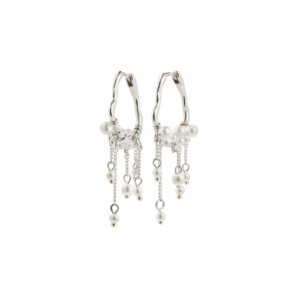 Add a magical vibe to your look with the silver-plated JASPER hoops from Pilgrim—earrings featuring an organic dreamcatcher-inspired design. Small beads and delicate chains move like water bubbles, creating an enchanting touch that makes every motion special.