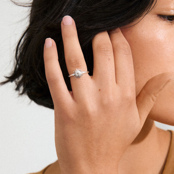 Shine bright! This silver-plated ring from Pilgrim's Lulu collection features a radiant sun, exuding energy and warmth. At the centre of the sun is a tiny eye with a sparkling crystal, giving your look a magical and mysterious touch.