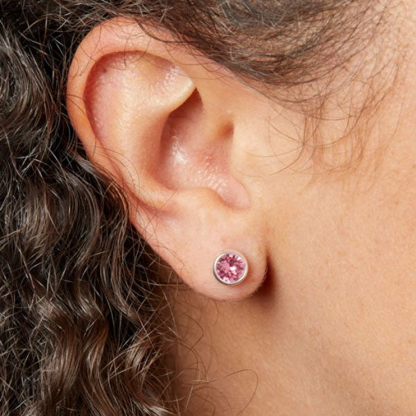 The stunning October Birthstone stud earrings by Beginnings make a thoughtful and personal gift. Made from polished sterling silver, and embellished with crystals by Swarovski® in pink colour. Why not complete the look with the matching necklace and ring.
