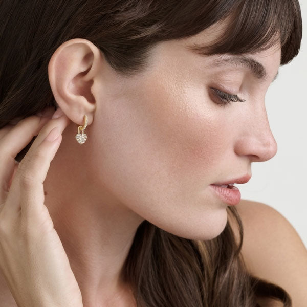 Ted Baker Pari Pavé Crystal Padlock Heart Drop Hoop Earrings 1.2 x 2cm