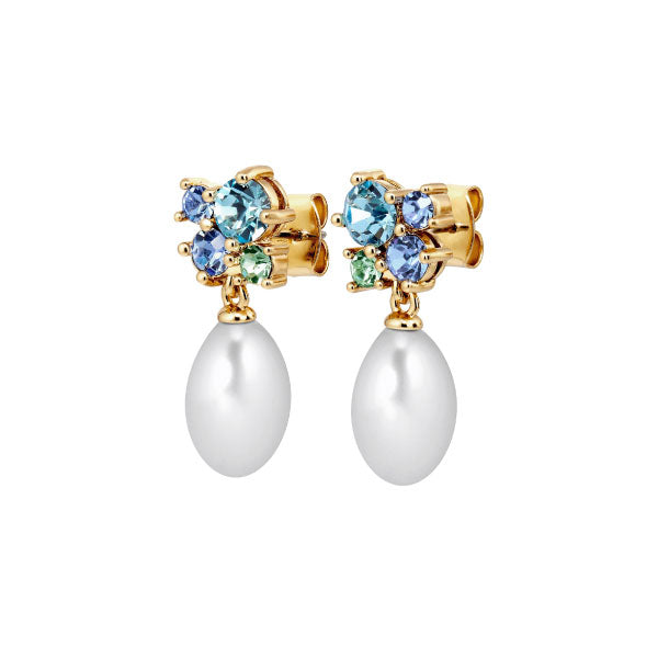 Petun Gold Drop Earrings Aqua and White Pearl