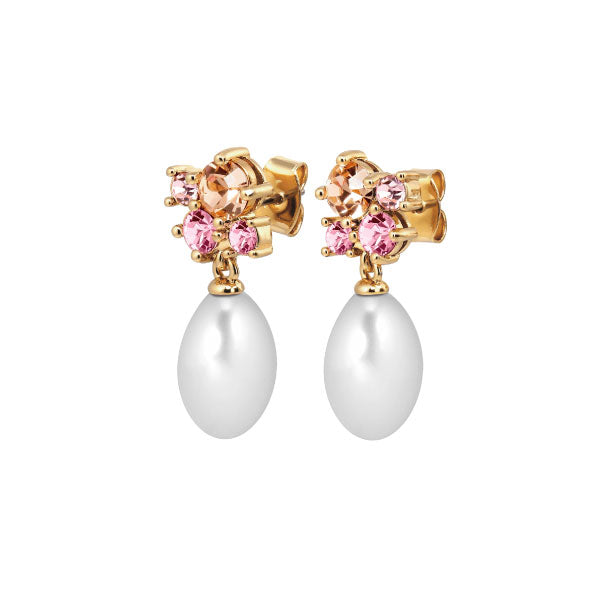 Petun Gold Drop Earrings Rose and White Pearl