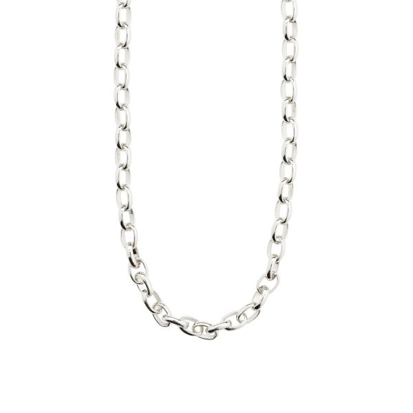 Be your own icon! Silver-plated cable chain in a delicate design - perfect for adding your favourite charms. The chain cultivates an edgy and industrial look with a powerful curb chain design that can be worn short and close to the neck, as a longer chain or as a stylish Y-chain. Find your inner urban vibes and style with your favourite charms for a true power look. The chain measures 50 cm and has a decorative T-bar clasp that allows you to adjust the length according to mood and occasion. Let your inner strength shine and enjoy the fact that the chain is made from 99% recycled material with care for our shared planet in mind.