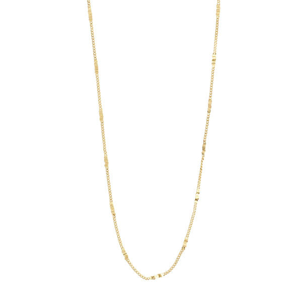 Create your own style with this delicate gold-plated necklace from Pilgrim's CREATE collection. The necklace has a unique look with the flat shiny links which give the chain a beautiful structure. Wear the chain in its own simplicity, or style it with other chains for a layered and trendy style. The necklace measures 40 cm + 15 cm extension chain. Recycled item that is made from a minimum of 75% recycled materials.