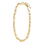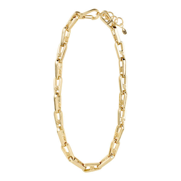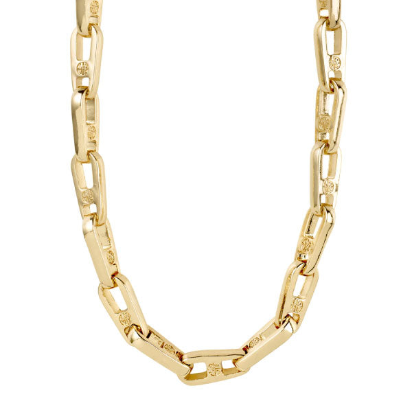 All you need is love! Chunky gold-plated necklace from Pilgrim's Love collection. A powerful and unique unisex design that oozes urban coolness and raw vibes. Embossed LOVE details on the chain's chunky links give the season's must-have piece a final touch. The necklace measures 44 cm + 4 cm extension chain and can be styled with high-waisted jeans and a T-shirt for a raw, autumnal look.