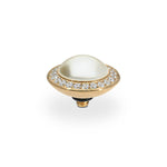 This Qudo 13mm Tondo Deluxe Top has a cream pearl stone surrounded by Swarovski crystals in a gold coloured stainless steel case. Customize your ring with easy change ring toppers. Hand Made in Germany.