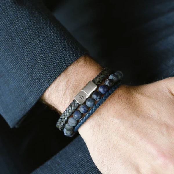 Riley Silver and Marine Blue Leather Mens Bracelet