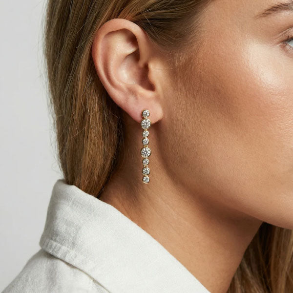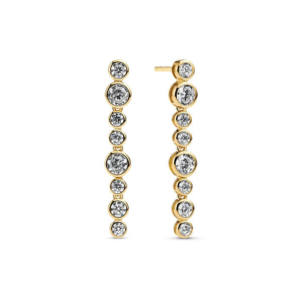 Earrings made of 18 carat gold plated 925 Sterling Silver, with a polished surface and handset with facet cut white zirconia.