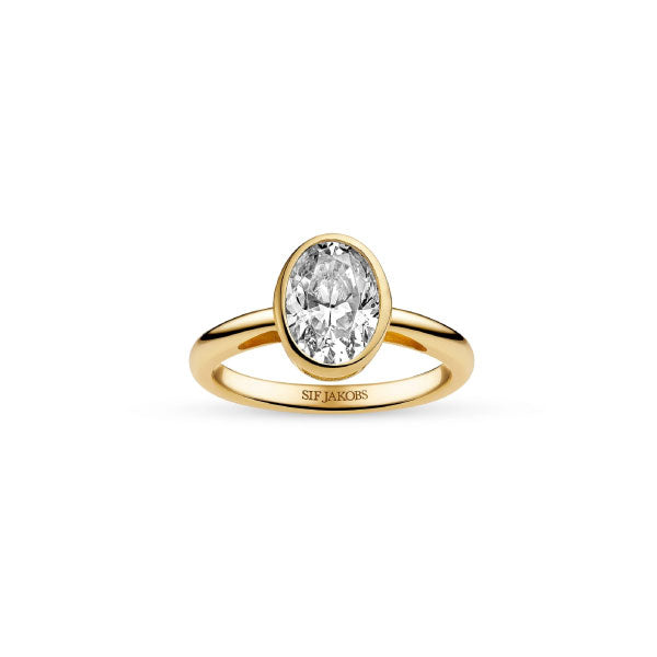 Ring made of 18 carat gold plated 925 Sterling Silver, with a polished surface and handset with facet cut white zirconia.