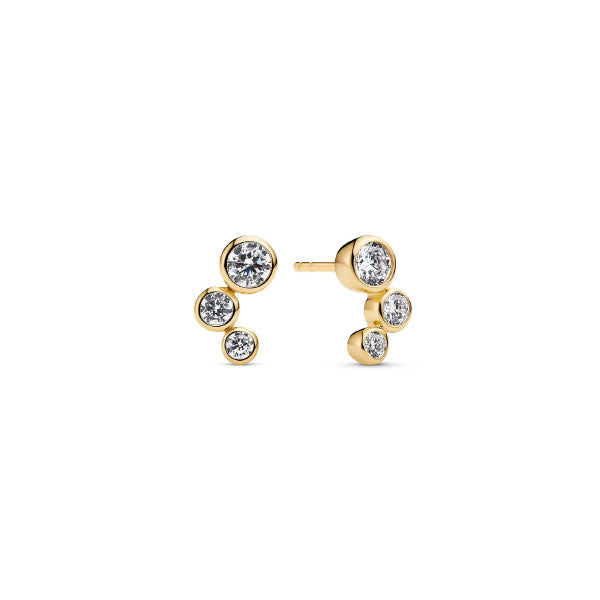 Earrings made of 18 carat gold plated 925 Sterling Silver, with a polished surface and handset with facet cut white zirconia.
