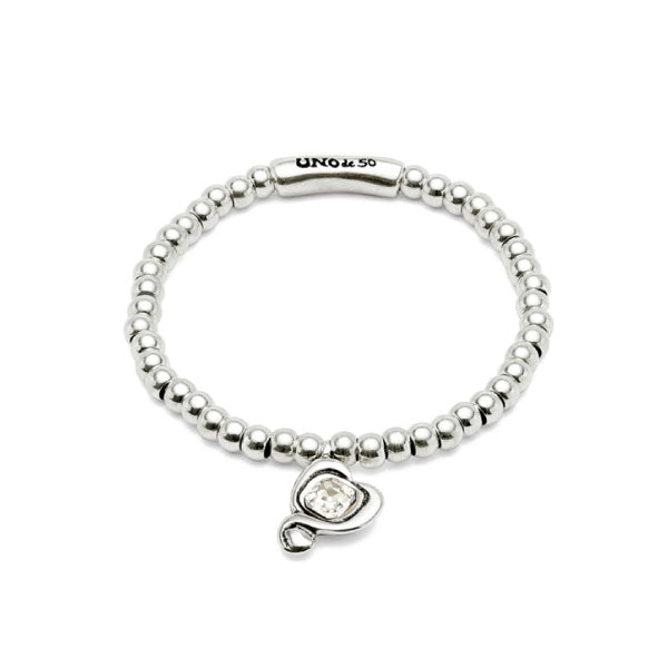 Ser Expresiva Silver Beaded Bracelet with Heart and Crystal L