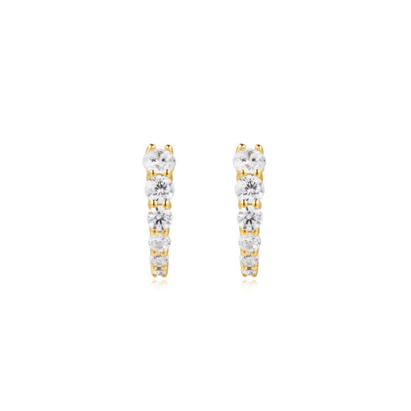 Embrace these sleek classic huggies with an on-trend twist for the season. The simple pieces are embellished with sparkle with a row of shimmering cubic zirconia stones. Versatile enough to wear solo or stack with your favourite studs, hoops and ear cuffs.