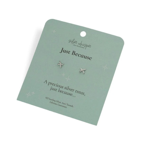 Silver Whisper "Just Because" 925 Sterling Silver kiss shaped stud earrings.