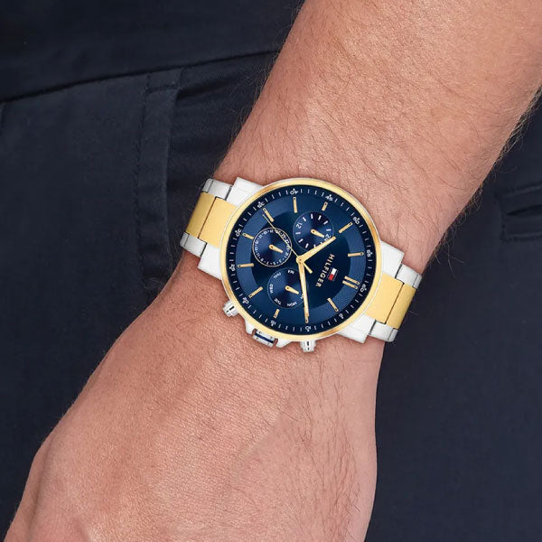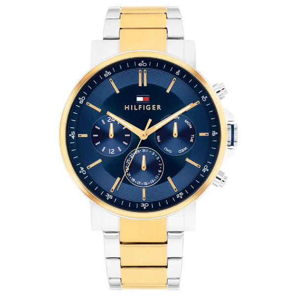 Elevate your everyday style with the Tommy Hilfiger Men’s Tyson Watch in silver and gold. Crafted from durable stainless steel, this timepiece combines sleek metallic tones for a refined and versatile look. Perfect for adding a touch of sophistication to any outfit, its classic design ensures you stay stylish whether at work or out on the town.